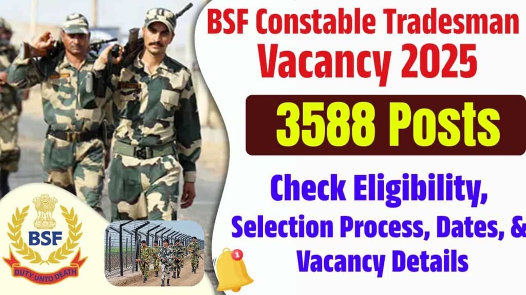 BSF Constable Tradesman 2025: 3588 पदों के लिए Online आवेदन, पात्रता, परीक्षा पैटर्न और चयन प्रक्रिया